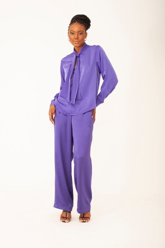 O modelo possui gola laço, que adiciona charme e modernidade ao visual, além de mangas longas com caimento soltinho que garantem conforto e movimento.