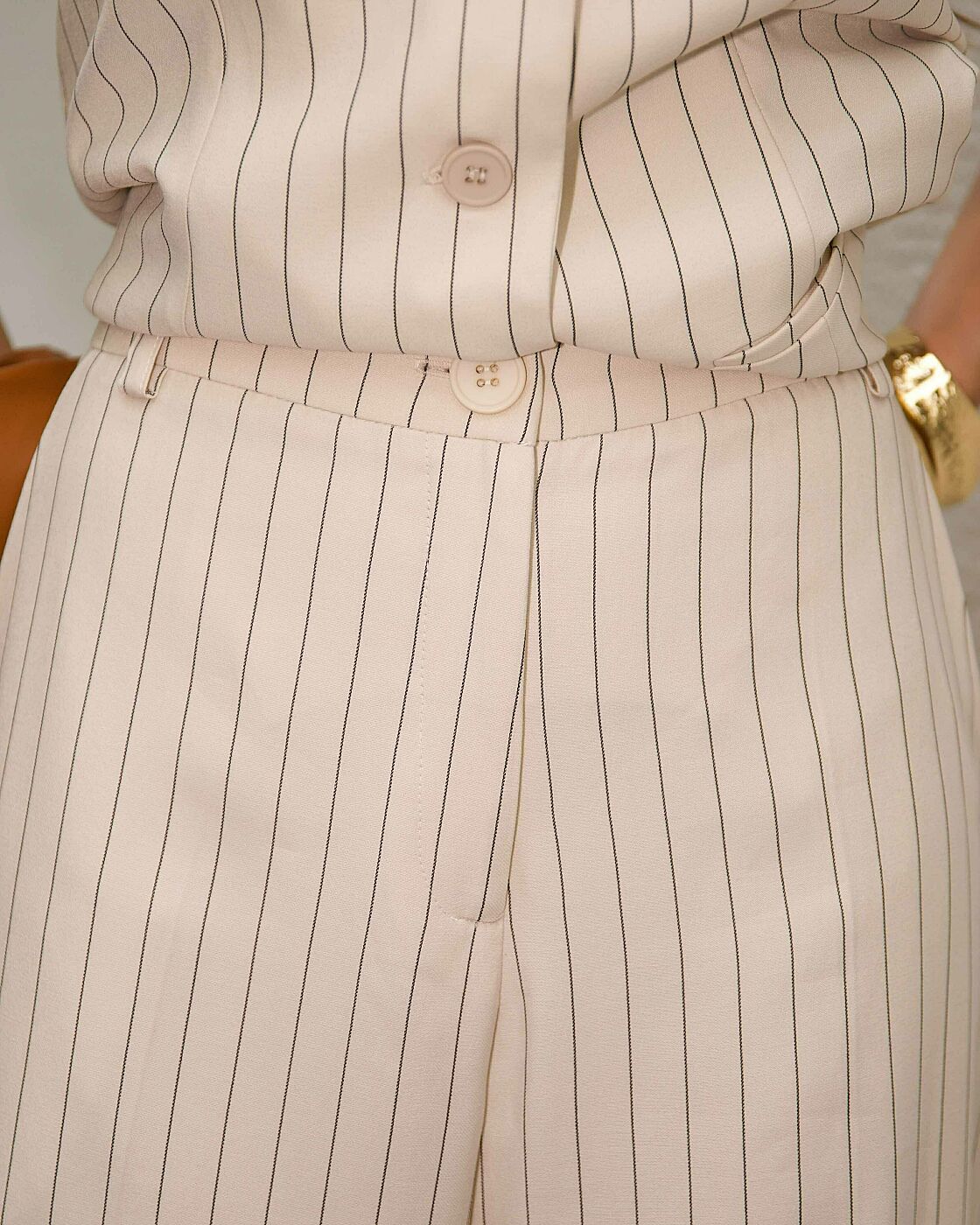 Elegante e atemporal, a Calça Reta Risca de Giz traz sofisticação com seu caimento leve e modelagem fluida. Com cós alto, bolsos laterais e estampa clássica de risca de giz, é perfeita para composições modernas e versáteis — do office look ao visual casual chic.