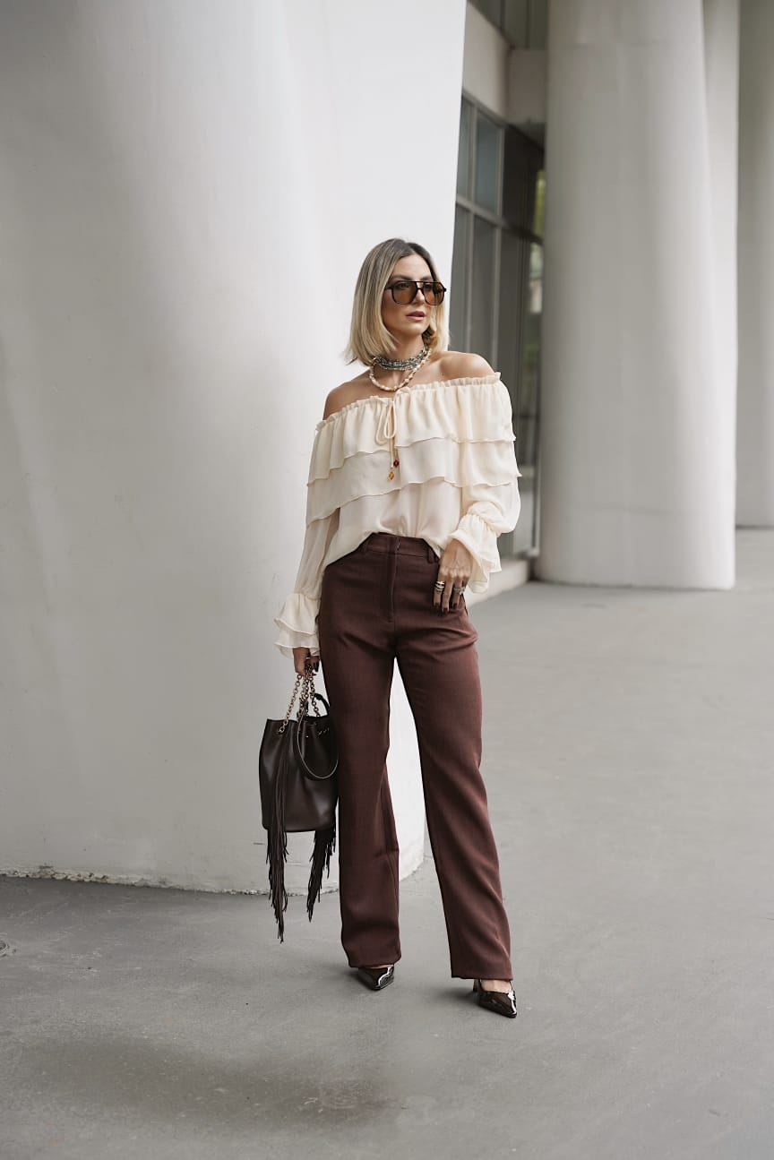 Essa blusa ciganinha é perfeita para quem ama unir feminilidade e elegância com um toque boho chic. Confeccionada em crepe leve e fluido, oferece caimento solto, toque suave e ótimo conforto térmico.